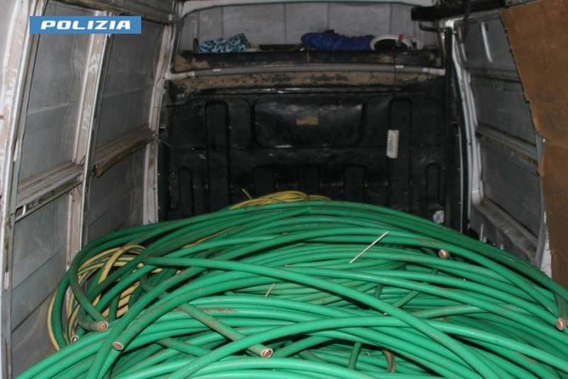 La situazione ha insospettito i poliziotti che hanno effettuato un controllo del veicolo; all’interno del vano di carico hanno rinvenuto un grande quantitativo di rame, pari a 4160 kg, il cui peso aveva provocato la foratura dello pneumatico. Vista la mancanza del conducente e di eventuali passeggeri del furgone, nella certezza che qualcuno avrebbe dovuto necessariamente presentarsi per recuperare quel prezioso carico, gli agenti hanno organizzato un servizio di appostamento che ha consentito di arrestare tre soggetti.