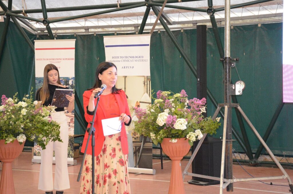 Per premiare le ragazze e i ragazzi del Chimico la Preside ha invitato il prof. Mariano Venanzi, docente di chimica dell’Università Tor Vergata, che ha annunciato l’intenzione di organizzare ad Arpino una scuola estiva di chimica, la prof.ssa Laura Micheli, presidente della sezione Lazio della Società Chimica Italiana, che ha premiato gli alunni vincitori dei Giochi della Chimica 2025, il prof. Massimiliano Aschi, chimico dell’Università de L’Aquila, la Dirigente Scolastica prof.ssa Anita Monti dell’istituto comprensivo Evan Gorga di Broccostella.