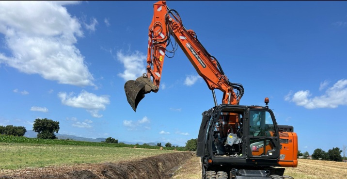 Per l’esecuzione dei suddetti lavori sono stati impiegati tre escavatori cingolati, rispettivamente da 38, 100 e 135 quintali di peso operativo, un escavatore gommato da 155 quintali, una minipala gommata da 25 quintali e un trattore da 145 CV con braccio decespugliatore da 10 metri.