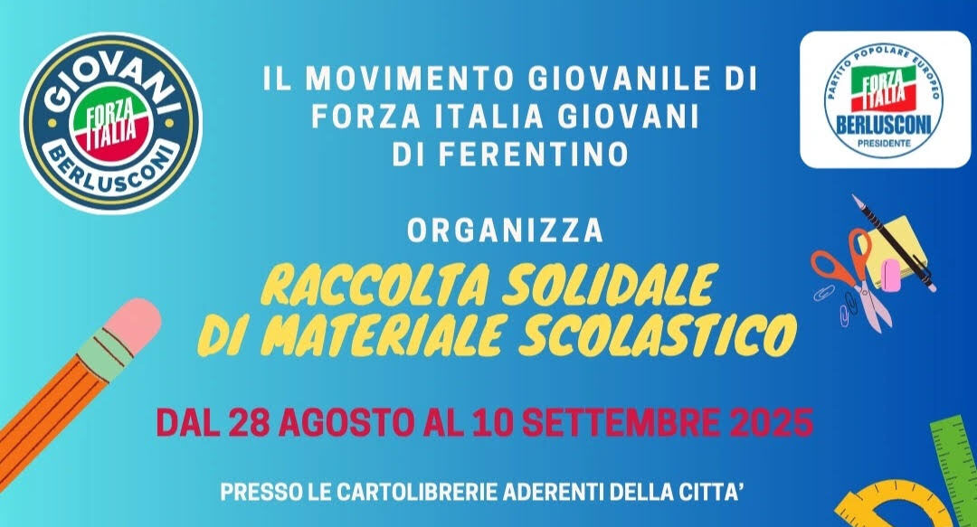 Arriva sul territorio gigliato l’iniziativa sociale “Raccolta di Materiale Scolastico” promossa dal gruppo giovanile di Forza Italia Giovani Ferentino, coordinato da Claudia Angelisanti.