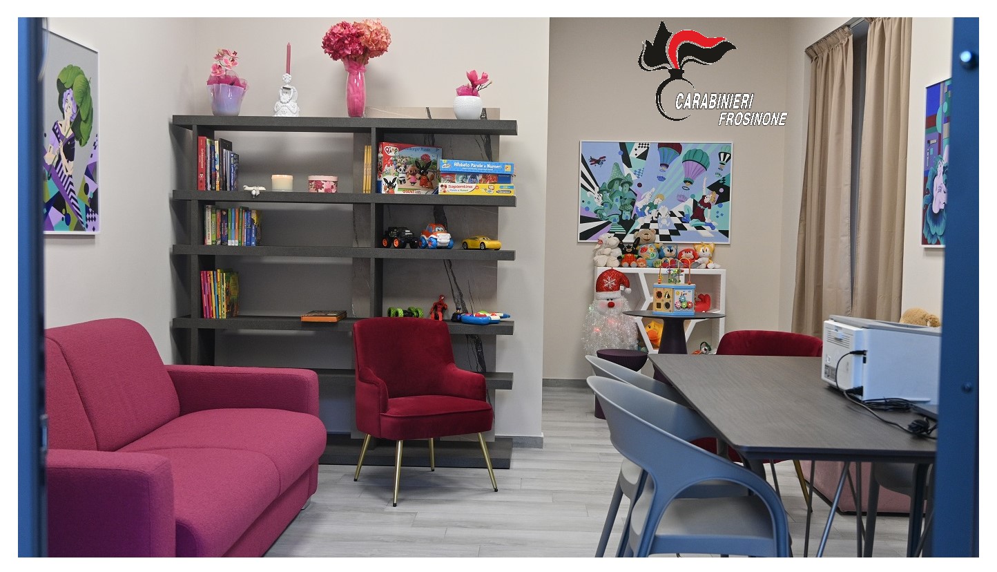 La stanza inaugurata oggi a Frosinone (come e le altre), destinata alle audizioni protette di donne e bambini e, più genericamente per l’audizione delle vittime vulnerabili, consiste in un ambiente “riservato”, creato all’interno del Comando Provinciale di Frosinone, diverso da un qualsiasi altro ufficio, accogliente ed “intimo”, che pone le vittime di particolari reati nella migliore condizione per potersi confidare e sporgere una denuncia in un contesto “familiare” proteso ad attenuare il disagio e la sofferenza di questi particolari momenti.