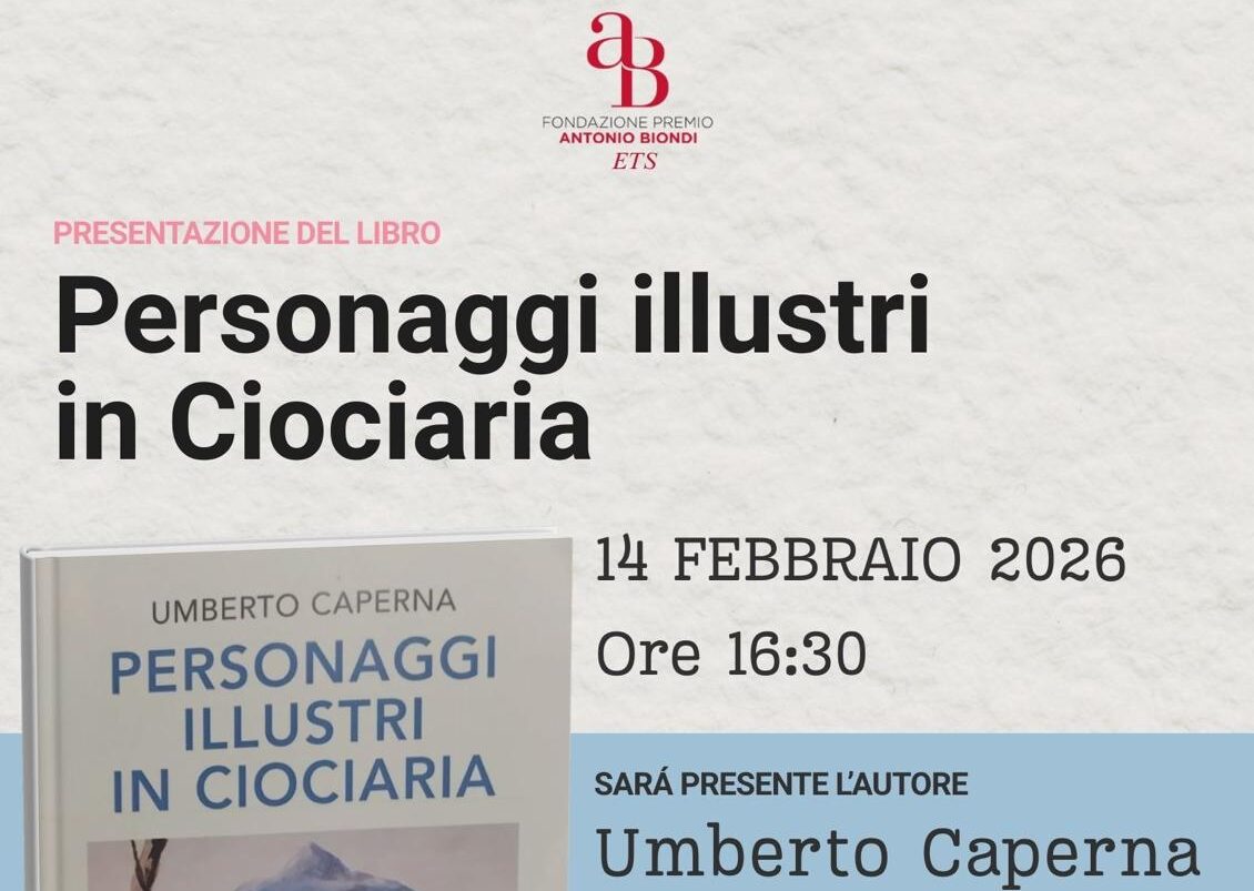 Si terrà questo pomeriggio nell’Auditorium Comunale di Morolo, con inizio alle 16,30, a ora della Fondazione Premio Antonio Biondi, la presentazione dell’ultimo libro di Umberto Caperna “Personaggi Illustri di Ciociaria” per i tipi di Ciolfi Alla presenza dell’autore ne discuteranno il giornalista e critico d’arte Alfio Borghese, il giornalista Massimo Sergio, il poeta Antonio Pietropaoli e il presidente della Fondazione Biondi, Luigi Canali.