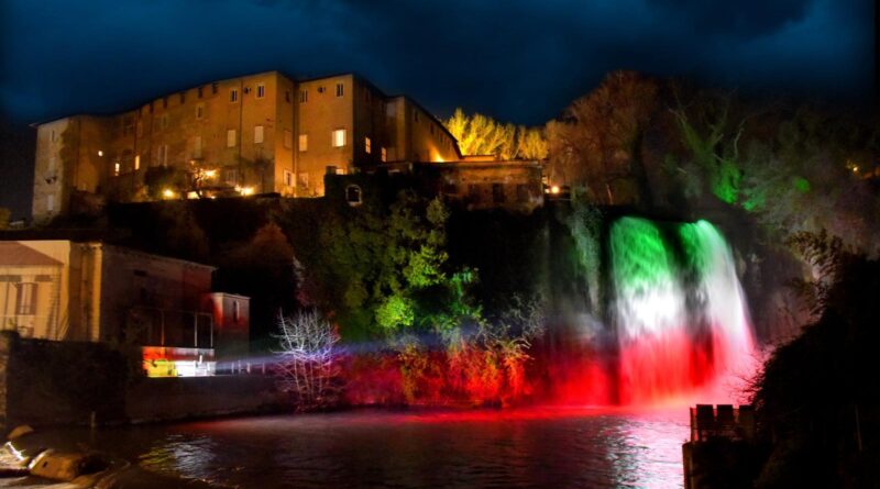 Nel Frusinate, il tricolore si è acceso su uno dei luoghi più suggestivi del territorio: la Cascata di Isola Liri, simbolo naturale della provincia e scenario evocativo per l’iniziativa.